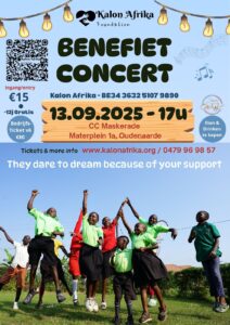 Op zaterdag 13 september 2025 nodigt Kalon Afrika je uit op onze jaarlijkse benefietavond in Oudenaarde. Geniet van een warme sfeer, optredens van de gemengde koren Ska-volk en Tabita, en een heerlijke combinatie van Belgische en Oegandese snacks. De opbrengst gaat integraal naar de steun van kwetsbare kinderen in Oeganda — want zij durven dromen, dankzij jouw steun.
